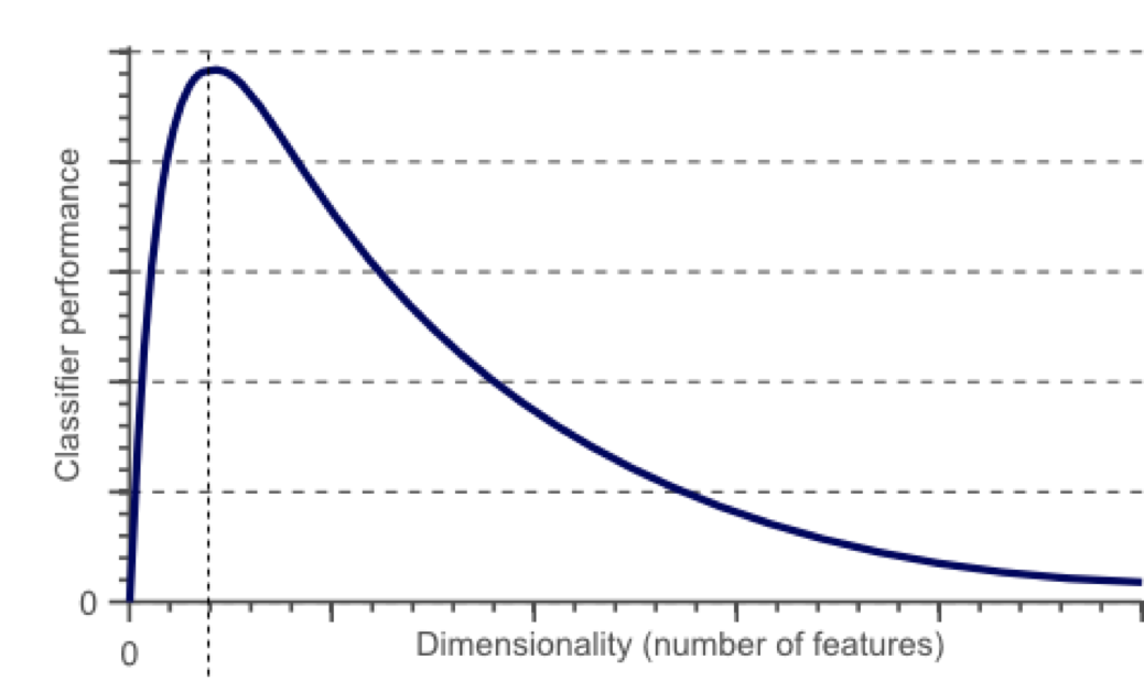 距离测量开始失去其在高维空间中测量的有效性,由于分类器取决于这些距离测量,因此在较低维空间中分类通常更容易,其中较少特征用于描述感兴趣对象。