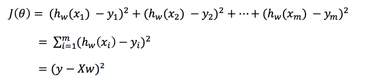 其中y是真实值矩阵,X是特征值矩阵,w是权重矩阵