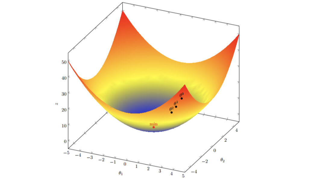 函数的梯度为: $$\Delta J(\theta)=<2\theta_1,2\theta_2>$$