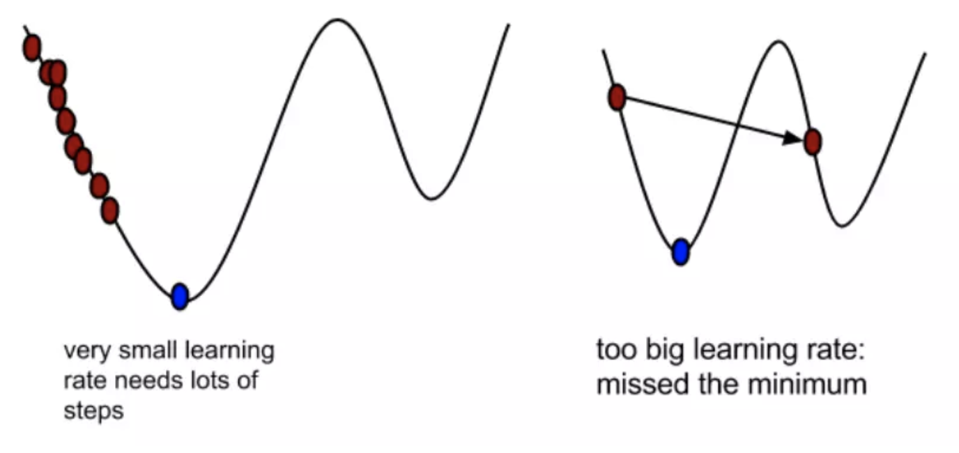 α在梯度下降算法中被称作为学习率或者步长,意味着我们可以通过α来控制每一步走的距离,以保证不要步子跨的太大扯着蛋,哈哈,其实就是不要走太快,错过了最低点。同时也要保证不要走的太慢,导致太阳下山了,还没有走到山下。所以α的选择在梯度下降法中往往是很重要的!α不能太大也不能太小,太小的话,可能导致迟迟走不到最低点,太大的话,会导致错过最低点!