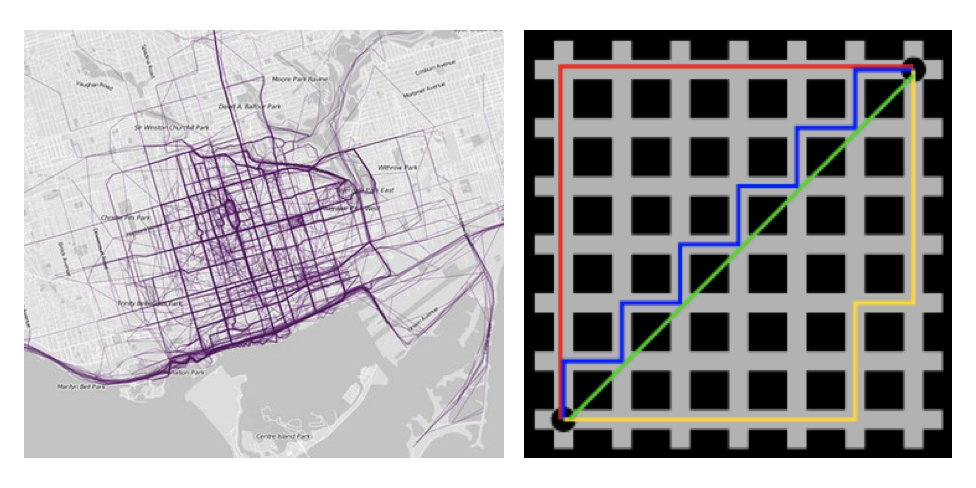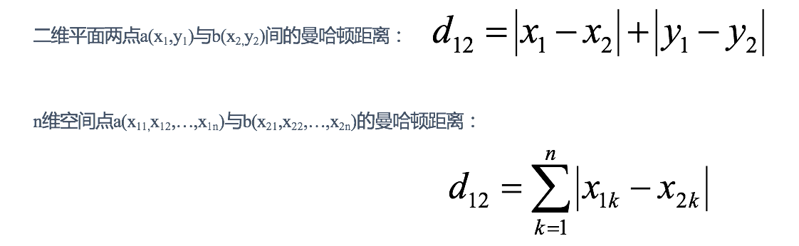 在曼哈顿街区要从一个十字路口开车到另一个十字路口,驾驶距离显然不是两点间的直线距离。这个实际驾驶距离就是“曼哈顿距离”。曼哈顿距离也称为“城市街区距离”(City Block distance)。