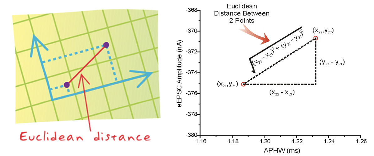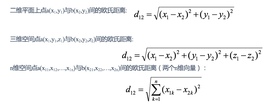 两个样本的距离可以通过如下公式计算,又叫欧式距离 ,关于距离公式会在后面进行讨论