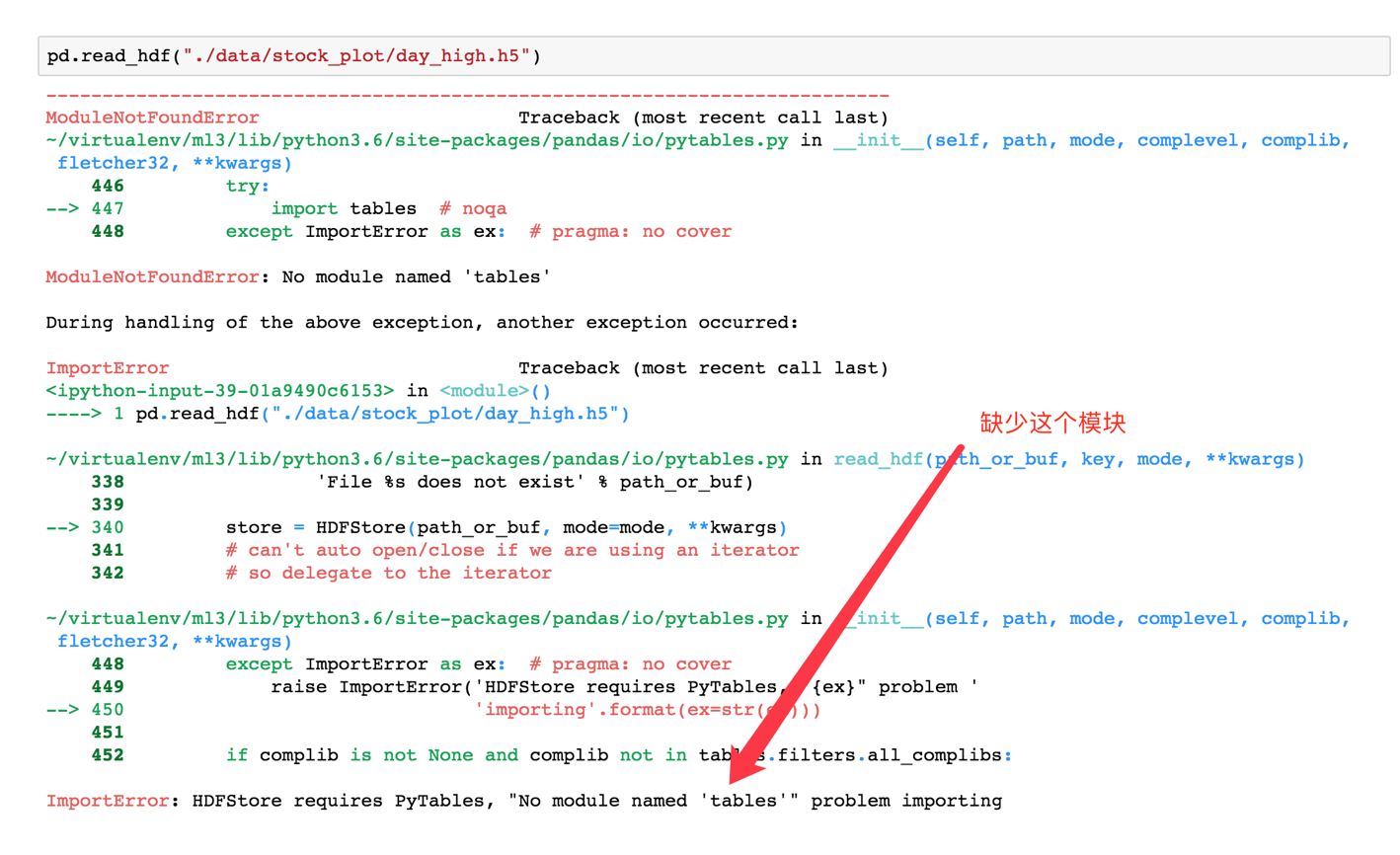 需要安装安装 tables 模块避免不能读取 HDF5 文件