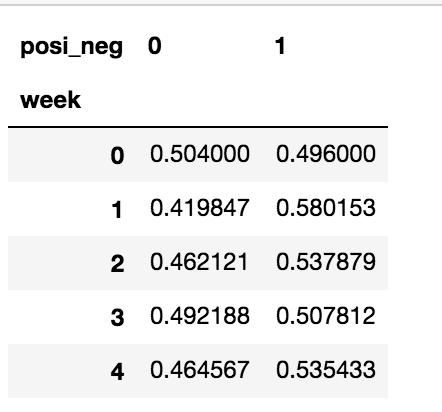 data.pivot_table(['posi_neg'], index='week')# 通过透视表,将整个过程变成更简单一些