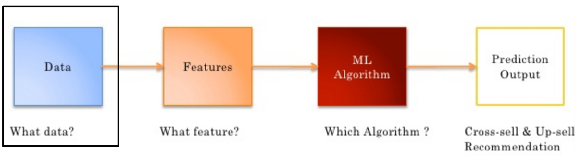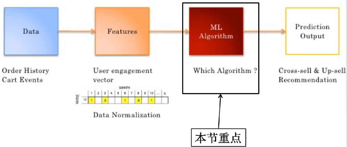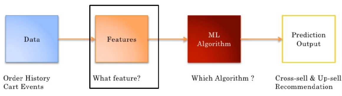 Data(数据)-> Features(特征)-> ML Algorithm(机器学习算法)-> Prediction Output(预测输出)