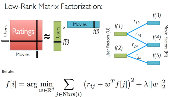 - ALS-WR(加权正则化交替最小二乘法): alternating-least-squares with weighted-λ –regularization