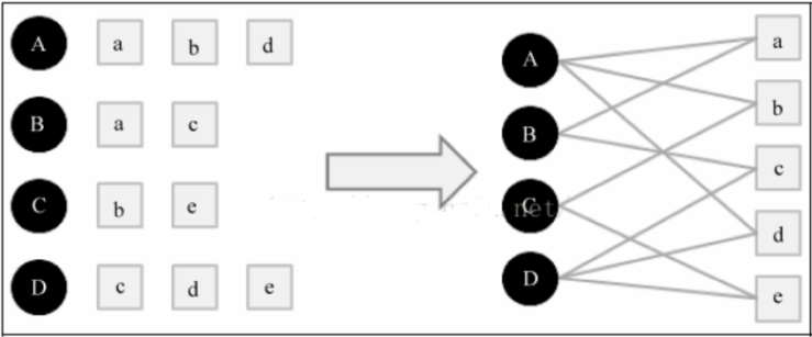 关于相似度计算这里先用一个简单的思想:如有两个同学 X 和 Y,X 同学爱好 [足球、篮球、乒乓球],Y 同学爱好 [网球、足球、篮球、羽毛球],可见他们的共同爱好有 2 个,那么他们的相似度可以用:2/3 * 2/4 = 1/3 ≈ 0.33 来表示。