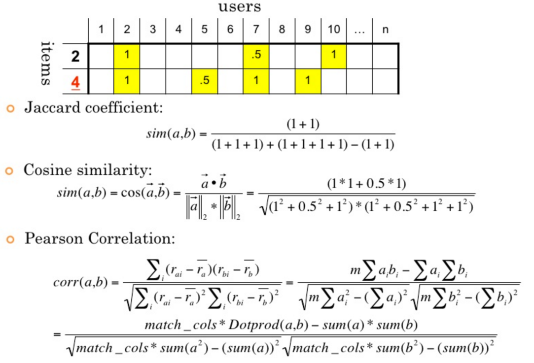 杰卡德相似度&余弦相似度&皮尔逊相关系数