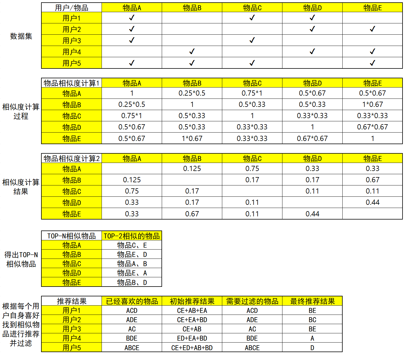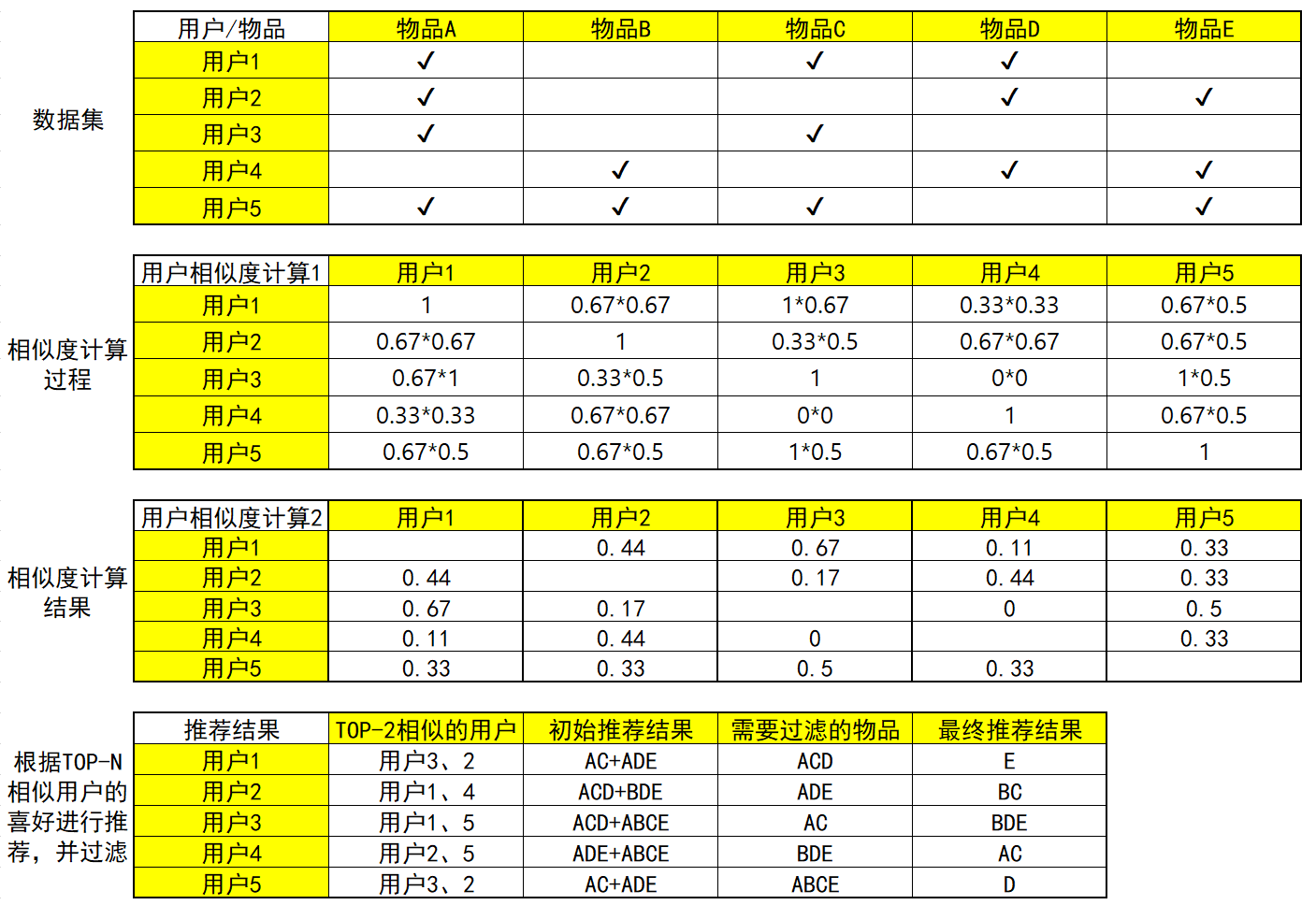 通过计算两两的相似度来进行排序,即可找出 TOP-N 相似的人或物品